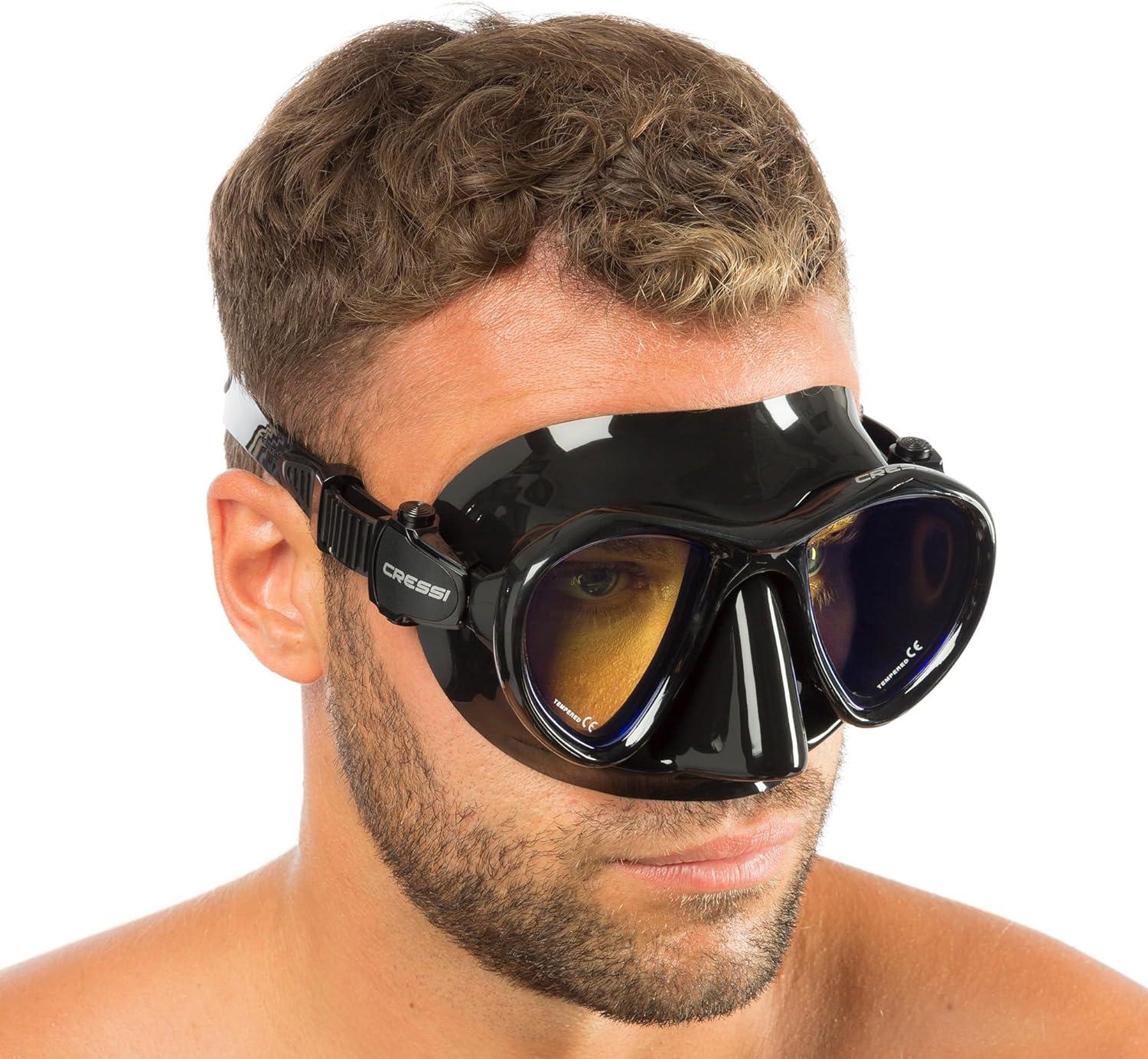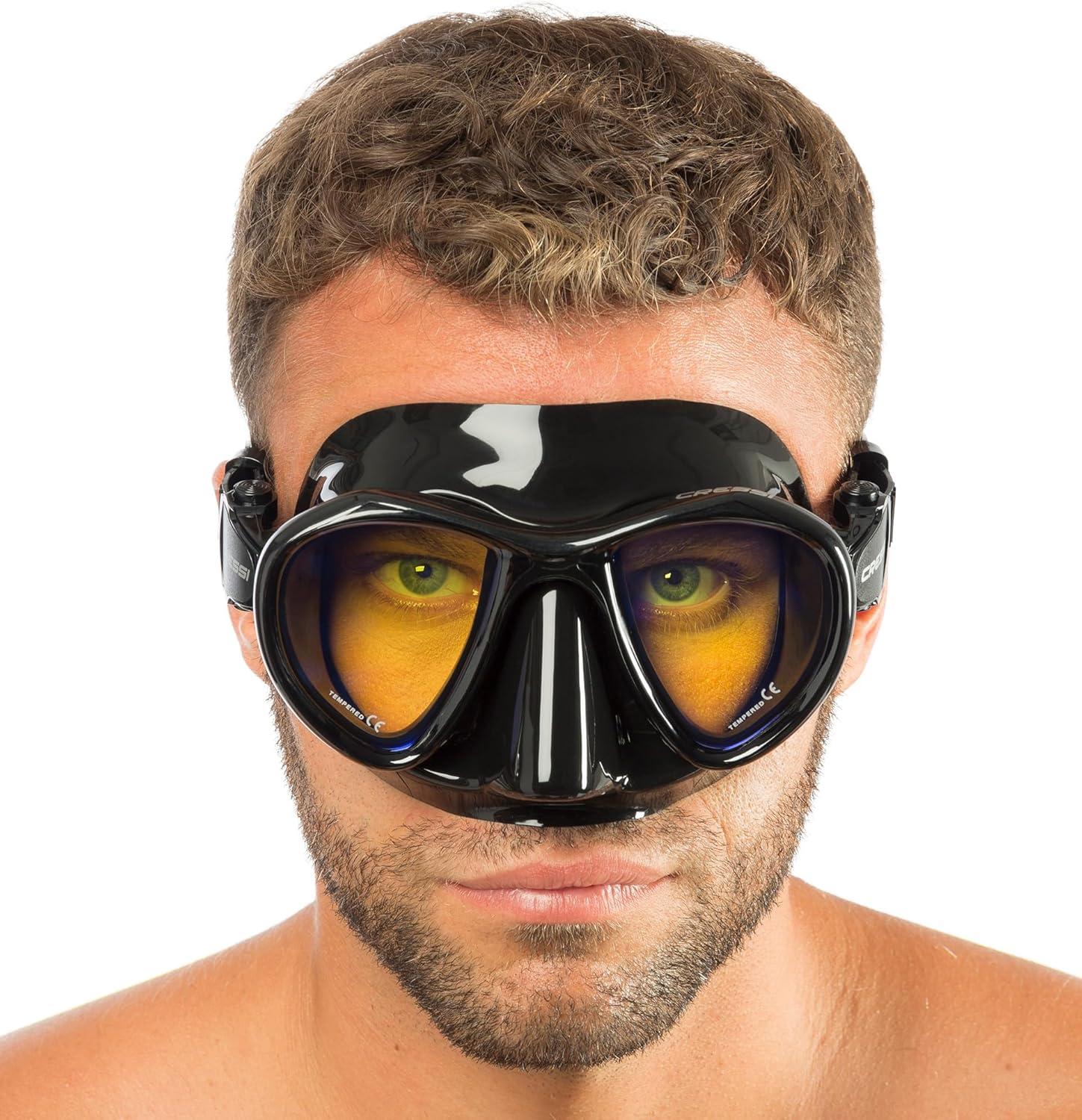 Adult Free Diving Photographer Low Volume Mask with Silicone Skirt- Metis by Cressi: Quality Since 1946(Black Yellow Lens)