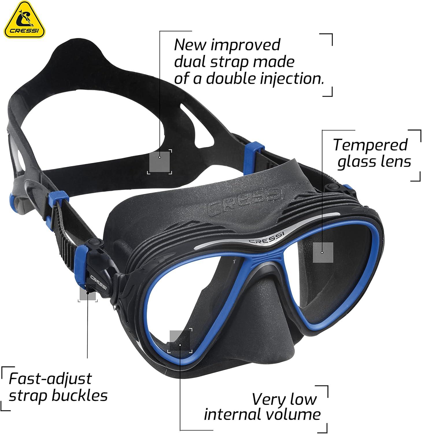 It features the Cressi's Advanced Stop Fog system that traps the moisture escaping from the nose reducing drastically the fogging up.