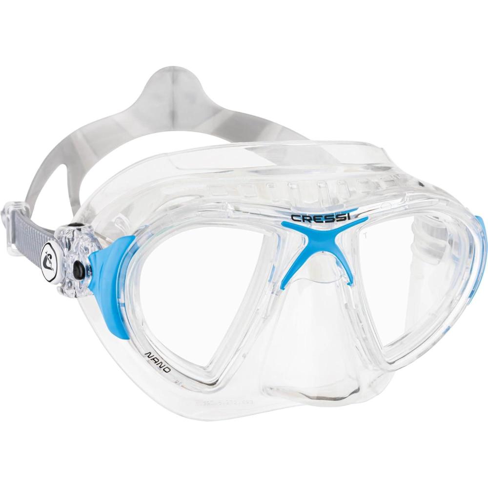 Not only has this new High Seal silicone been chosen, with its exceptional softness and comfort, but the entire design of the skirt has followed new rules which allow a point of contact between the mask and the face that has a very open angle.The mask rests on the face with unprecedented comfort and does not leave any marks on the skin, even after extended use.Naturally, to obtain such a result the entire structure of the skirt is differentiated, with internal ribs that stiffen the parts of the mask that are most stressed.The raked lenses(Cressi patent), are quite small and are brought as close to the pupils as possible, so that the already extraordinary visibility of the Matrix is increased by 25%.The headband uses the exclusive patented Cressi system of double injection of an elastomer on a rigid element and allows the buckles of the strap to be mounted not on the skirt structure, as done by our competitors, but on an indestructible elastic element that tilts on a vertical plane and can be completely bent sideways on a 180 curve.The thickness of the headband has been reduced to such an extent as to make it practically invisible when the mask is being worn.