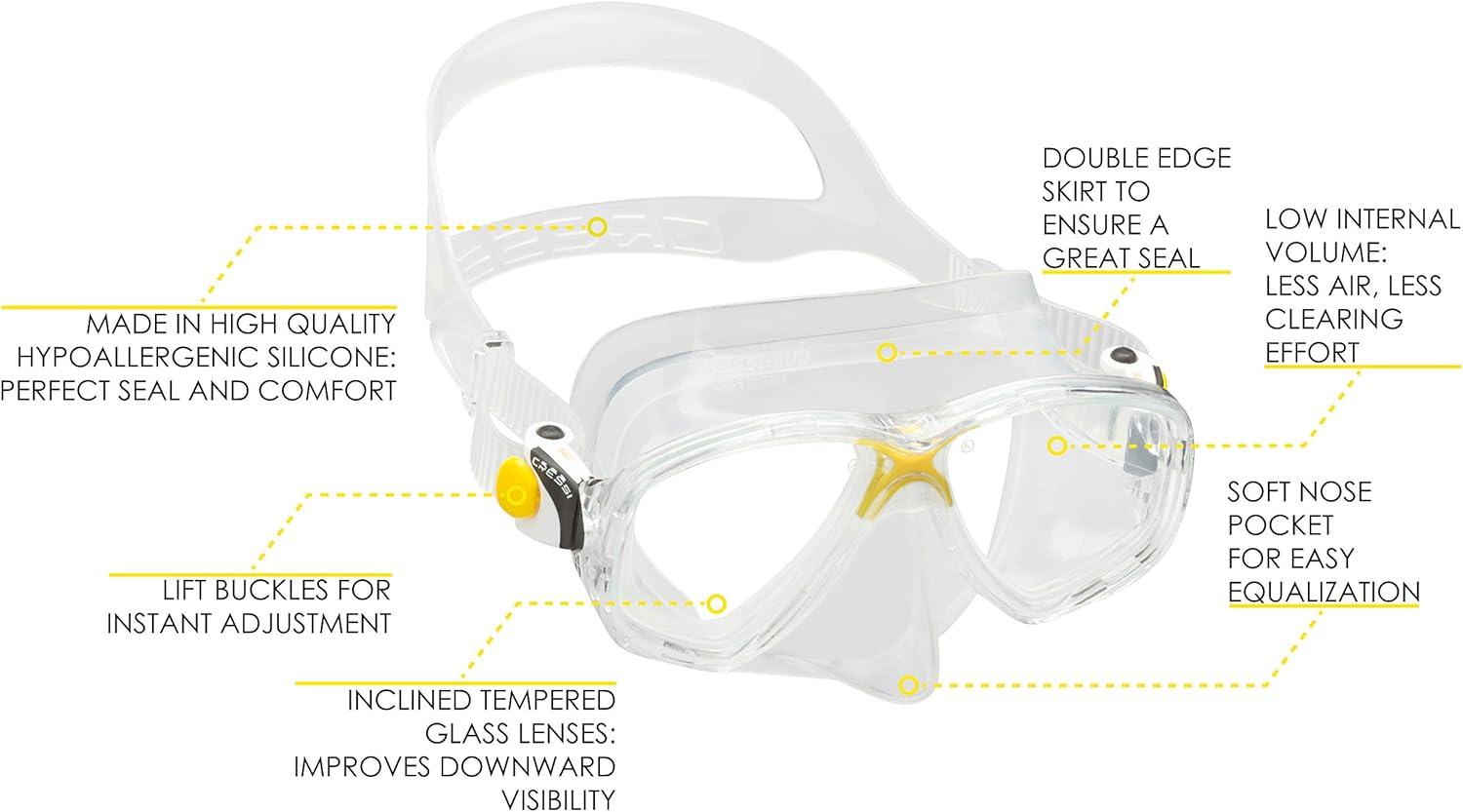 Cressi Adult Small Inner Volume Mask for Scuba, Snorkeling – Marea: Made in Italy(Clear/Yellow)