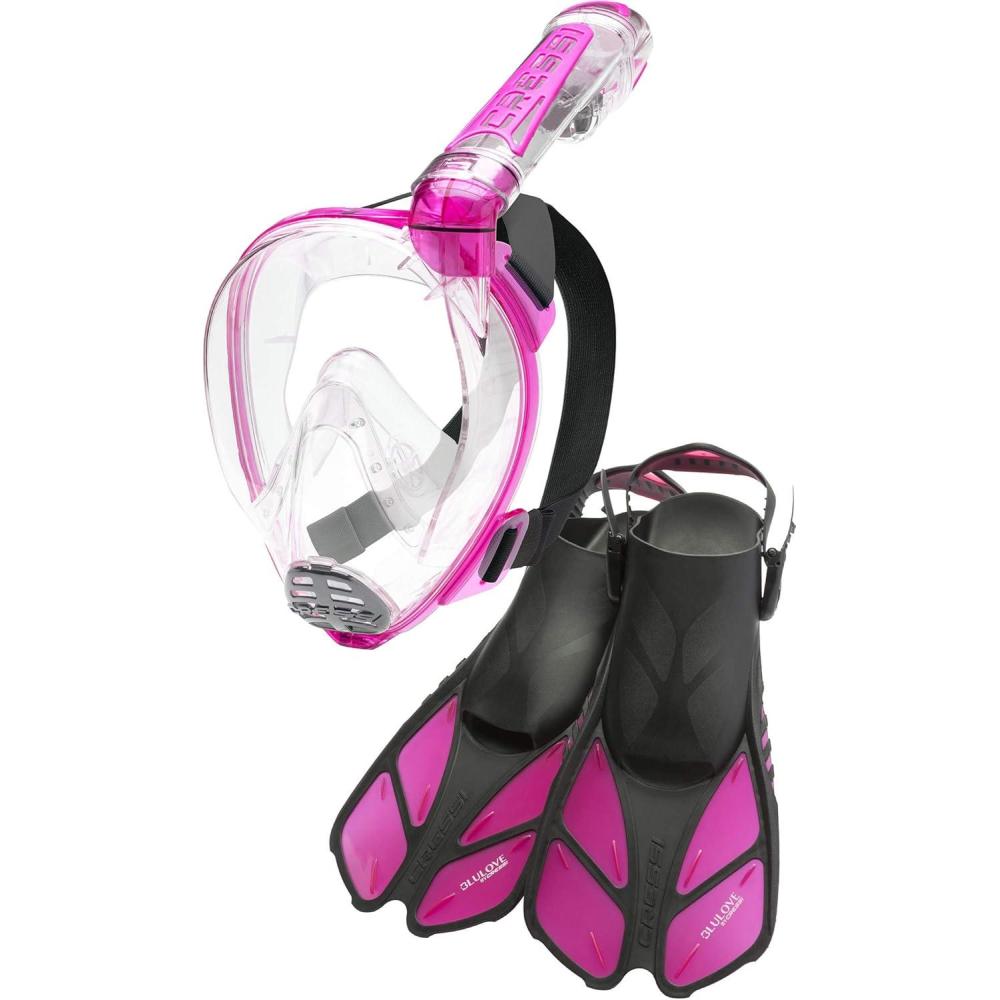Cressi Adult Snorkeling Full-Face Snorkel Mask & Adjustable Fins Kit – Wide Clear View, Anti-Fog System – Easy Breathing – Short Fins – Ideal for Traveling – Duke & Bonete: designed in Italy(Clear/Translucent Pink)