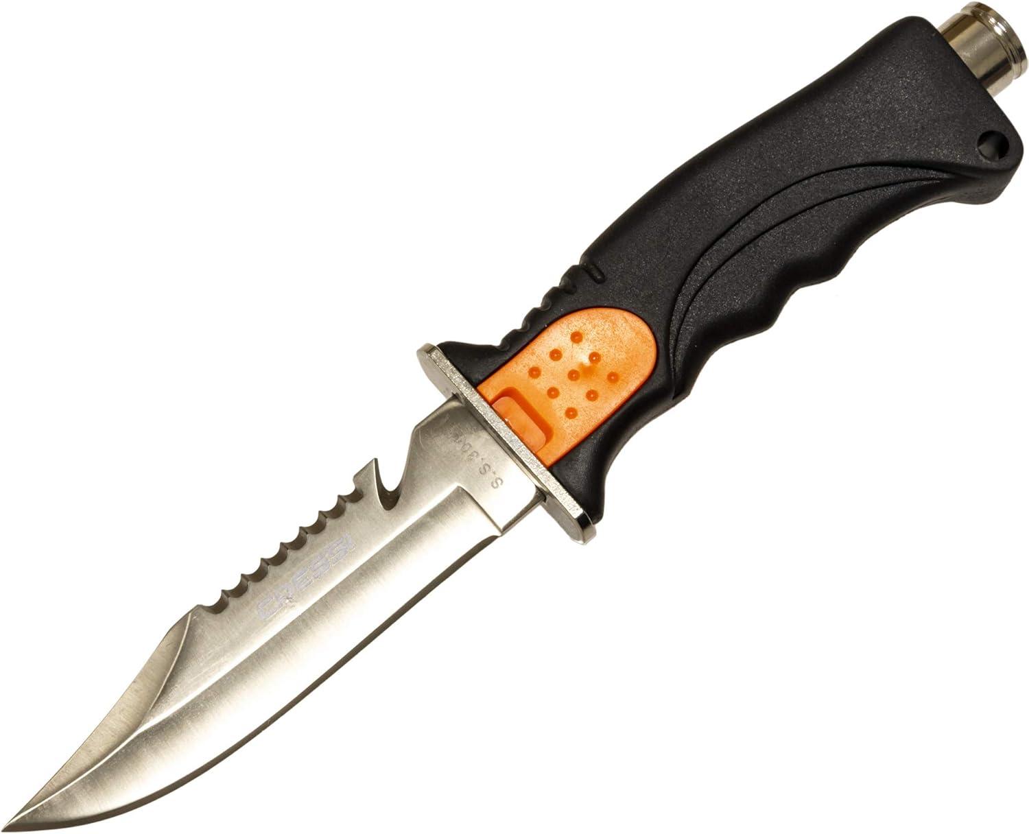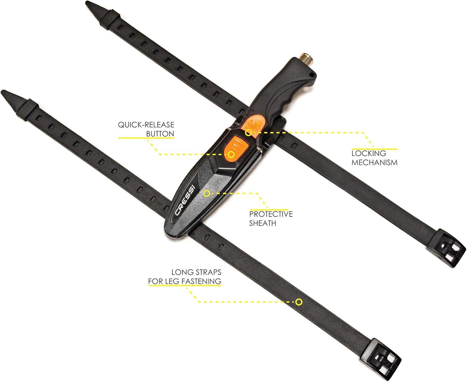 Cressi Borg, Long Blade Knife for Diving and Spearfishing Knife – Pointed & Blunt Tip(Orange)