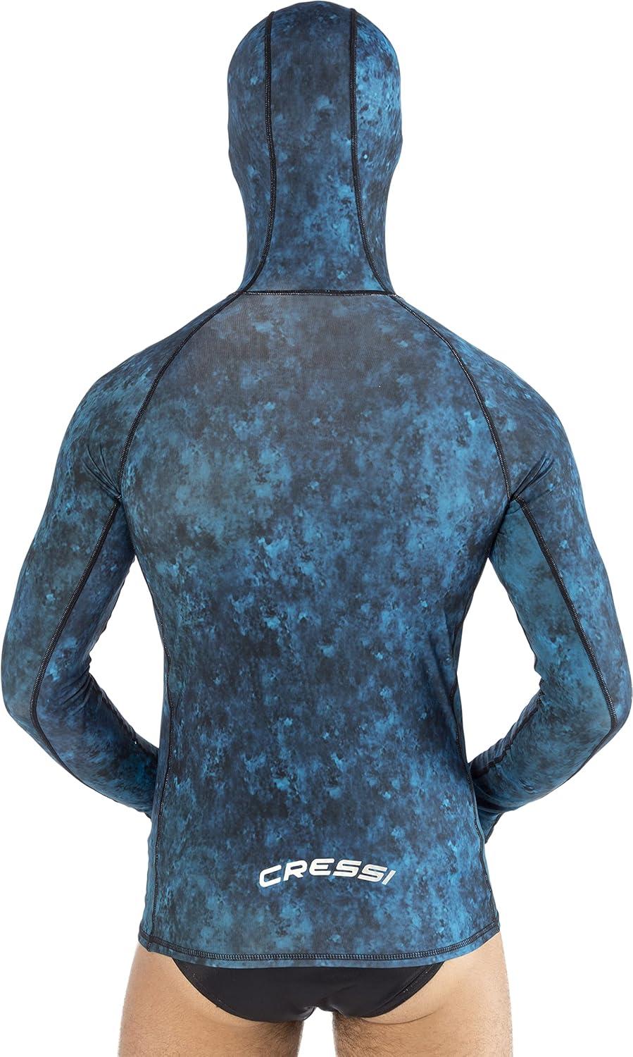 Cressi Camouflage Rash Guard for Scuba Diving Videomakers and Spearfishing – Hooded and Crew-Neck- get the Hunter equipment(Camo Blue)