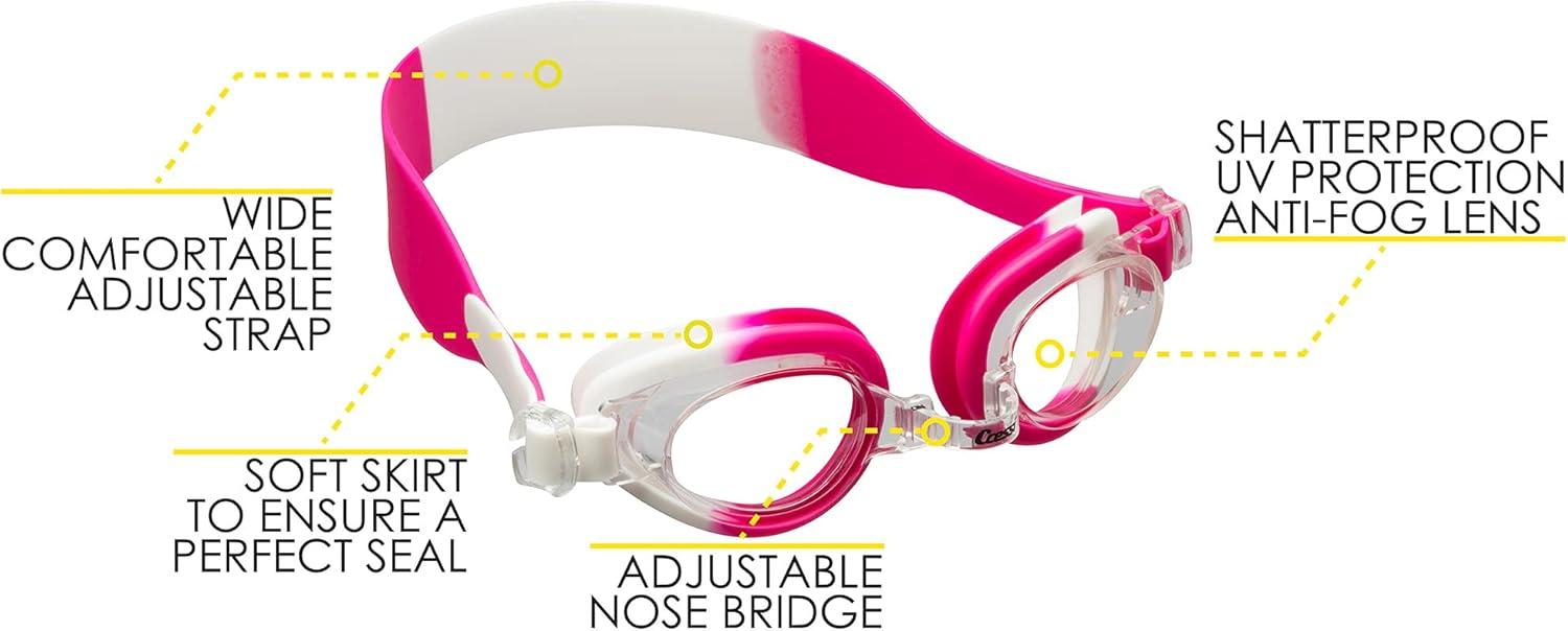 Cressi Colorful Kids Swim Goggles for Boys and Girls 4-8 Years Old – Dolphin 2.0, Starfish, and Seahorse: Designed in Italy(White/Pink)