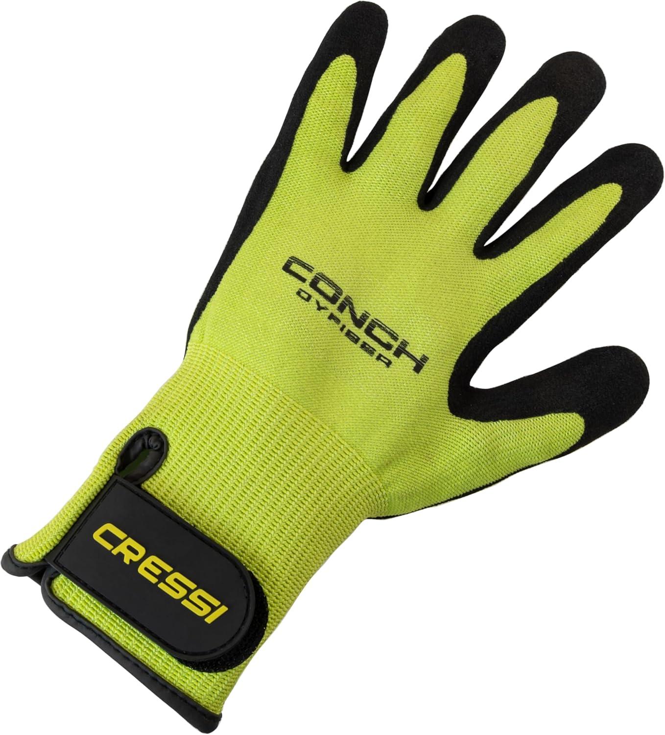 Cressi Conch Dyfiber Gloves – Protects Against Bumps and Scratches Without Losing Dexterity- Ideal for Spearfishing(Lime)