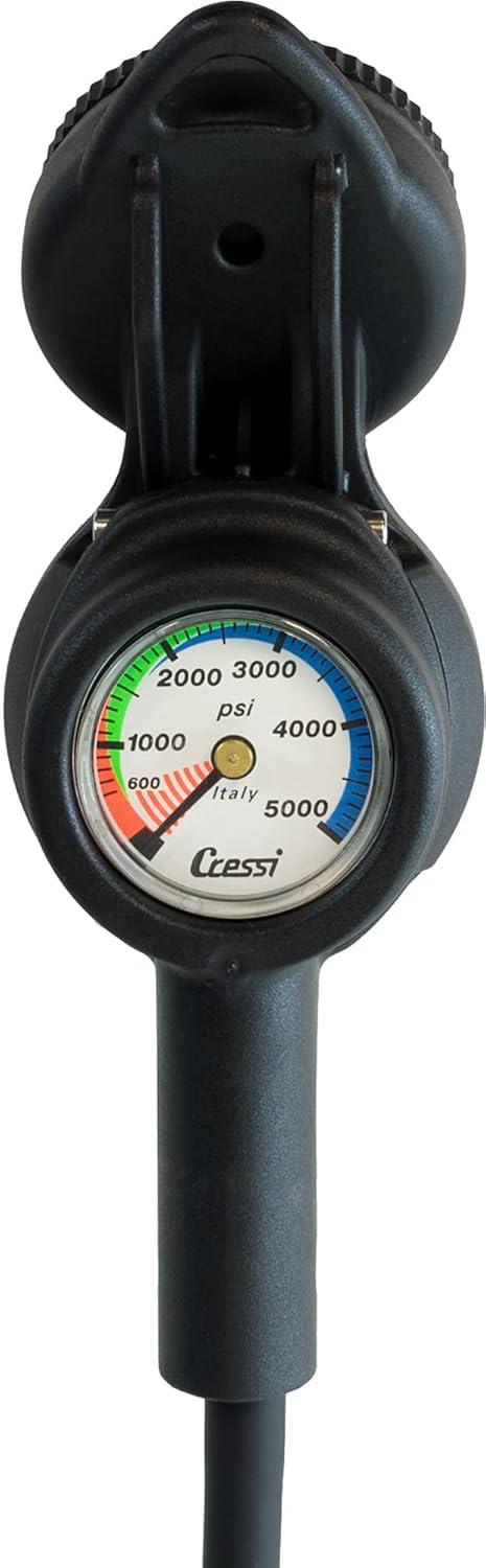 The Submersible Pressure Gauge has a color-coded scale that the divers can read at a glance. Reads pressures until 350 BAR / 5000 PSI.