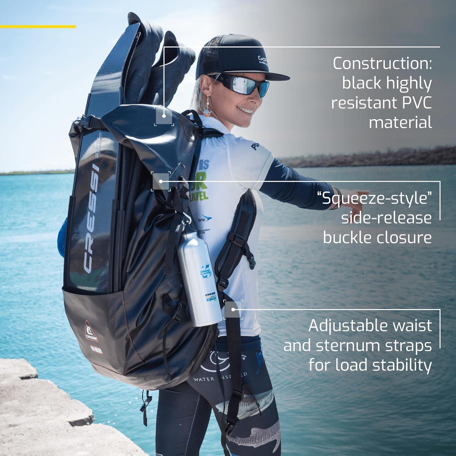 Cressi Dry Bag Gara 60 LT – Backpack Dry Bag for Diving Fins and Diving Material, Unisex Adult(Black)
