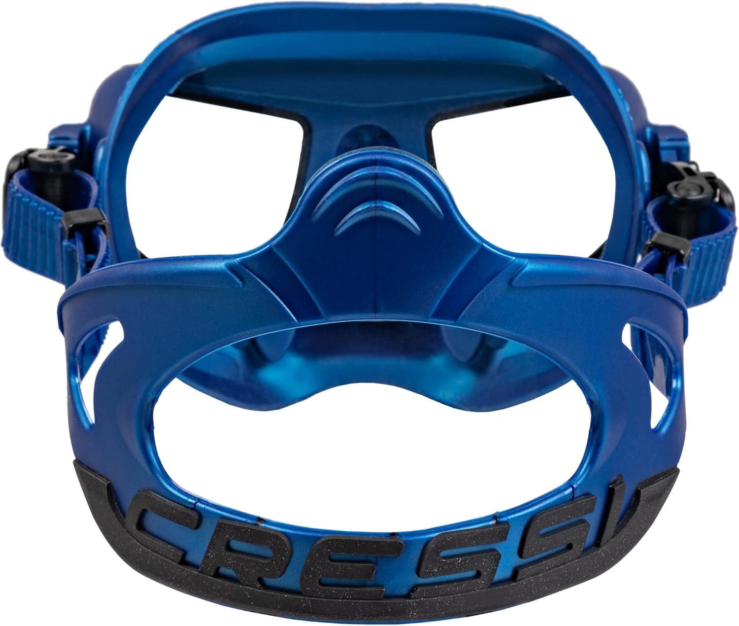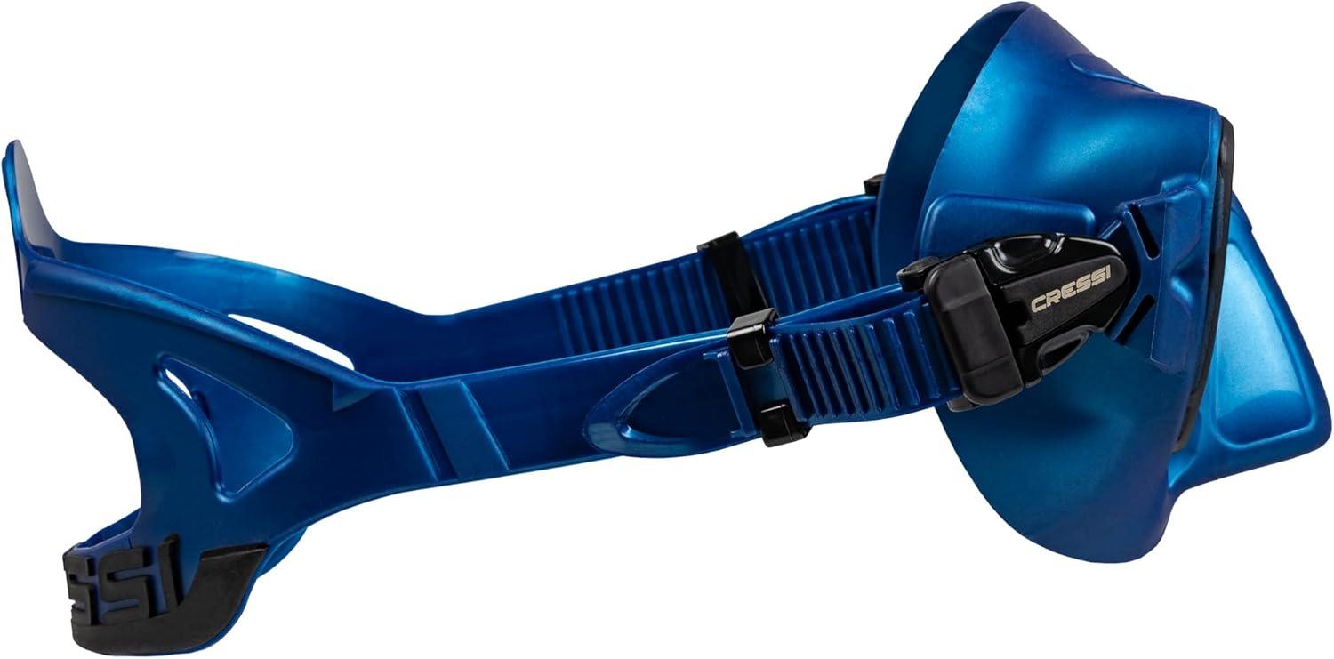 Cressi Frameless Freediving Mask with Reduced Internal Volume and Ergonomic Nose Shape – Atom: Made in Italy(Blue Metal/Black)