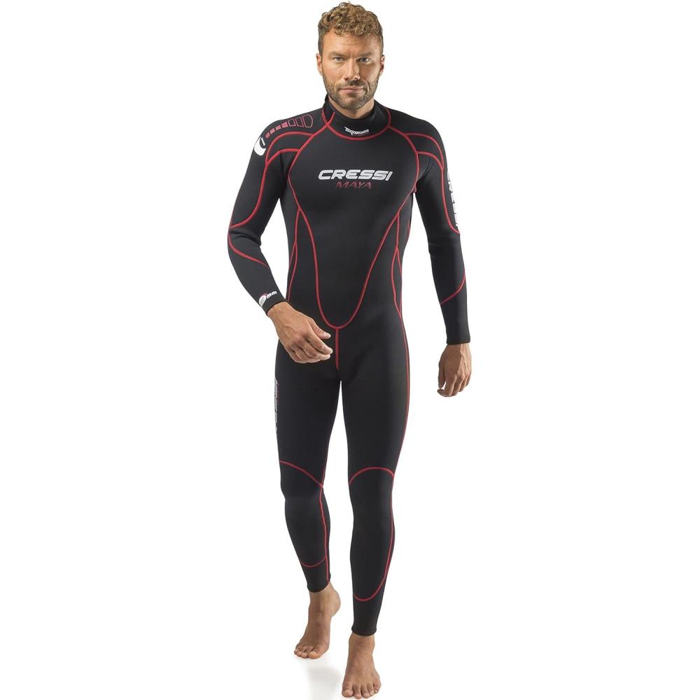 Cressi Full Diving Snorkeling Men’s and Ladies’ Wetsuit 2.5mm in Premium High Stretch Neoprene – Maya: Designed in Italy(Black/Red)