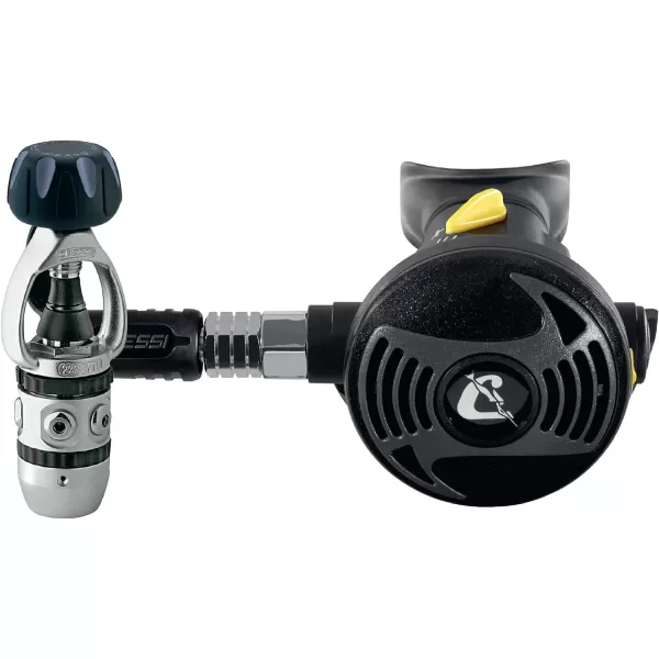 XS2/AC2 is the most inexpensive regulator in the Cressi range. The XS2 2nd stage comes with the traditional Cressi AC2 piston 1st stage. Constantly reviewed over the years, this regulator has lots of admirers in the world due to the fact that it is extremely simple and strong, features that make it easy to use and result in low-cost maintenance. 2nd stage XS2: The body of the 2nd stage is traditionally sized, made from hi-tech polymers and with a lateral valve downstream system with adjustable orifice, simple and extremely reliable. A flow of pilot air is channelled to the mouthpiece by injection, enhancing the performance. The 2nd stage comes with a a flow deviator that acts on the Venturi effect, with dive/pre-dive function. In any case, performance levels are high, and it is suitable for any kind of dive.
