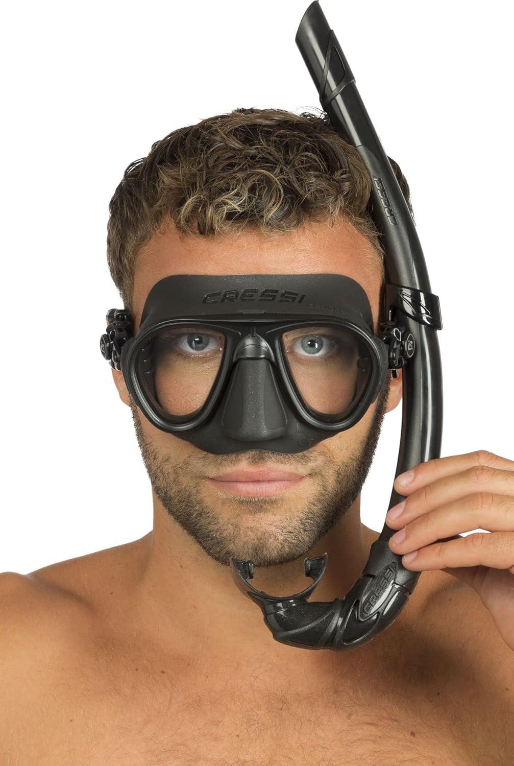 The first and the only scuba diving mask in the world equipped with the exclusive Fog-Stop System that drastically reduces the fogging on the lenses. Patent pending. The Calibro is equipped with Cressi's patented Integrated Dual Frame Technology which offers exceptional field of view and perfect sealing. Designed for an extremely hydrodynamic and compact shape and a particularly wide lens, maintaining the mask extremely close to the face. Frame integrated buckles through a robust but flexible rubber attachment allowing adjust and place the snorkel. The matte coating finish prevents reflections underwater. Perfect mask suitable for any activity: scuba, freediving, spearfishing. The Corsica is the ideal snorkel for freediving, spearfishing and scuba diving. Very light and comfortable. A large diameter snorkel tube provides unobstructed ease of breathing. Soft bendable snorkel tube to maintain proper and comfortable positioning. Specially designed and molded u-bend provides easier clearing capability. It is ultra-flexible and can be folded and stored in the BCD pocket. The Calibro & Corsica is designed and made in Italy by Cressi, a brand pioneer in freediving, spearfishing and scuba diving equipment since 1946. The product is covered by a 2-year limited warranty.