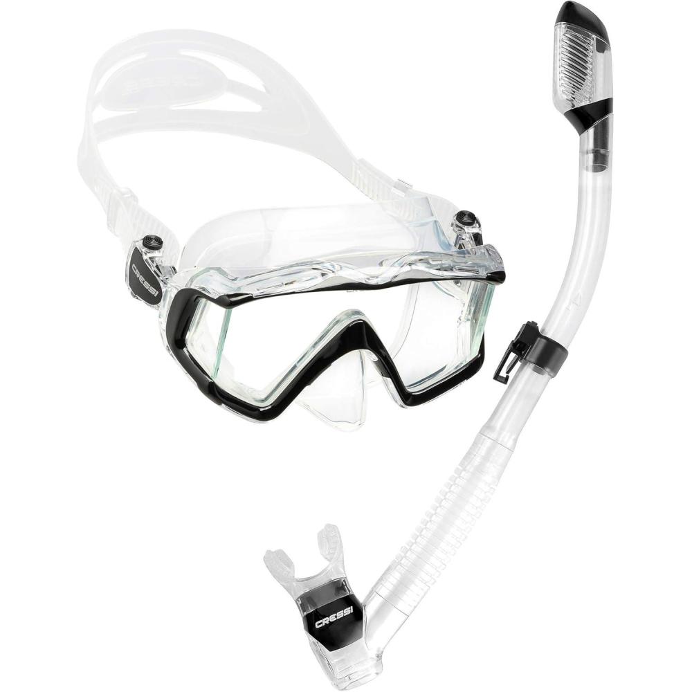 Cressi Panoramic Wide View Mask & Dry Snorkel Kit for Snorkeling, Scuba Diving – Pano 3 & Supernova Dry: Designed in Italy(Clear/Black)