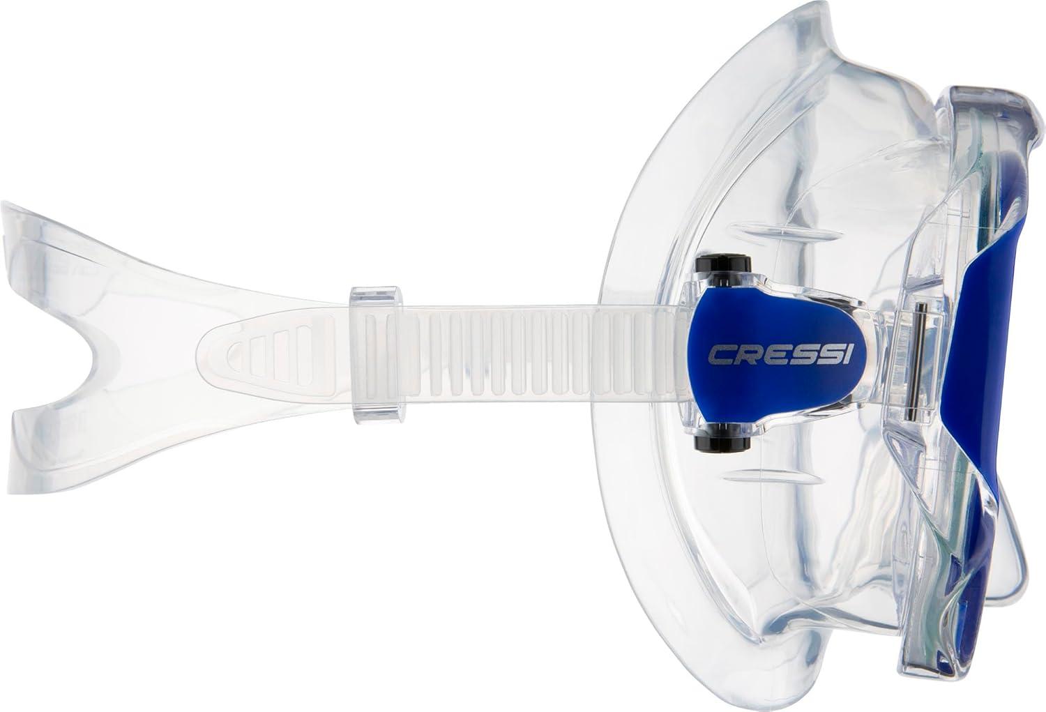 Cressi Perfect View Scuba Diving, Snorkeling Mask in Pure Comfortable Silicone – Available with Different Panoramic Lenses – Liberty: Designed in Italy(Clear/Blue)
