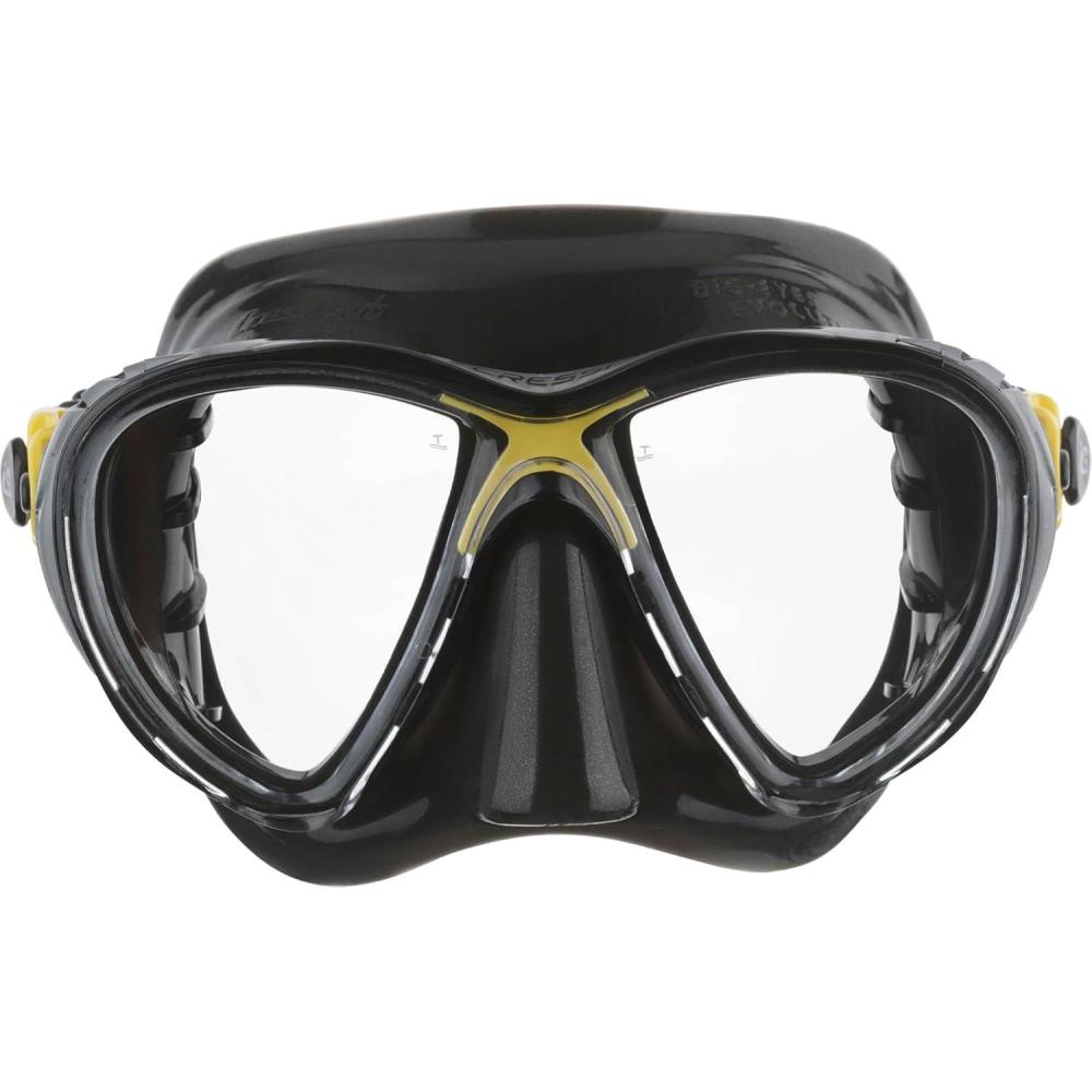 This revolutionary mask is made from black hypoallergenic high seal soft silicone rubber, a new material that offers extraordinary and unprecedented comfort and fit. The mask rests on the face with this unprecedented silicone rubber and does not leave any marks on the skin, even after extended use. So, if you're tired of your mask gives you ring-around the eyeballs, this mask is for you. Naturally, to obtain such a result the entire structure of the skirt is differentiated, with internal ribs that stiffen the parts of the mask that are most stressed.Mask gives an exceptionally wide field of view. The raked dual tempered glass lenses, with their inverted teardrop shape (Cressi Patent) rest as close to the eyes as possible, so that the already extraordinary field of view is increased by 25% over the Cressi Matrix Mask. The mask strap uses the exclusive patented Cressi system of double injecting of a flexible elastomer on a rigid element which allows the buckles of the strap to mounted not on the skirt structure as done with other masks, but on the Indestructible elastic element that tilt on a vertical plane and can be completely bent sideways up to 180-degree curve. The silicone mask strap is a wide split strap for even dispersion for increased fit and comfort.The thickness of the mask frame has been reduced to such an extent that it is practically Invisible when the mask is being worn. The mask skirt is a double feathered edge design and has an easy-to-reach on