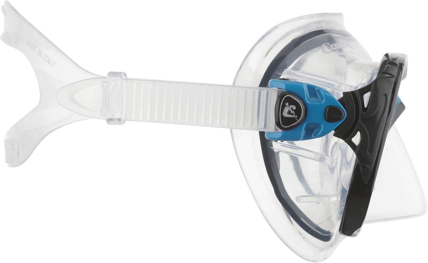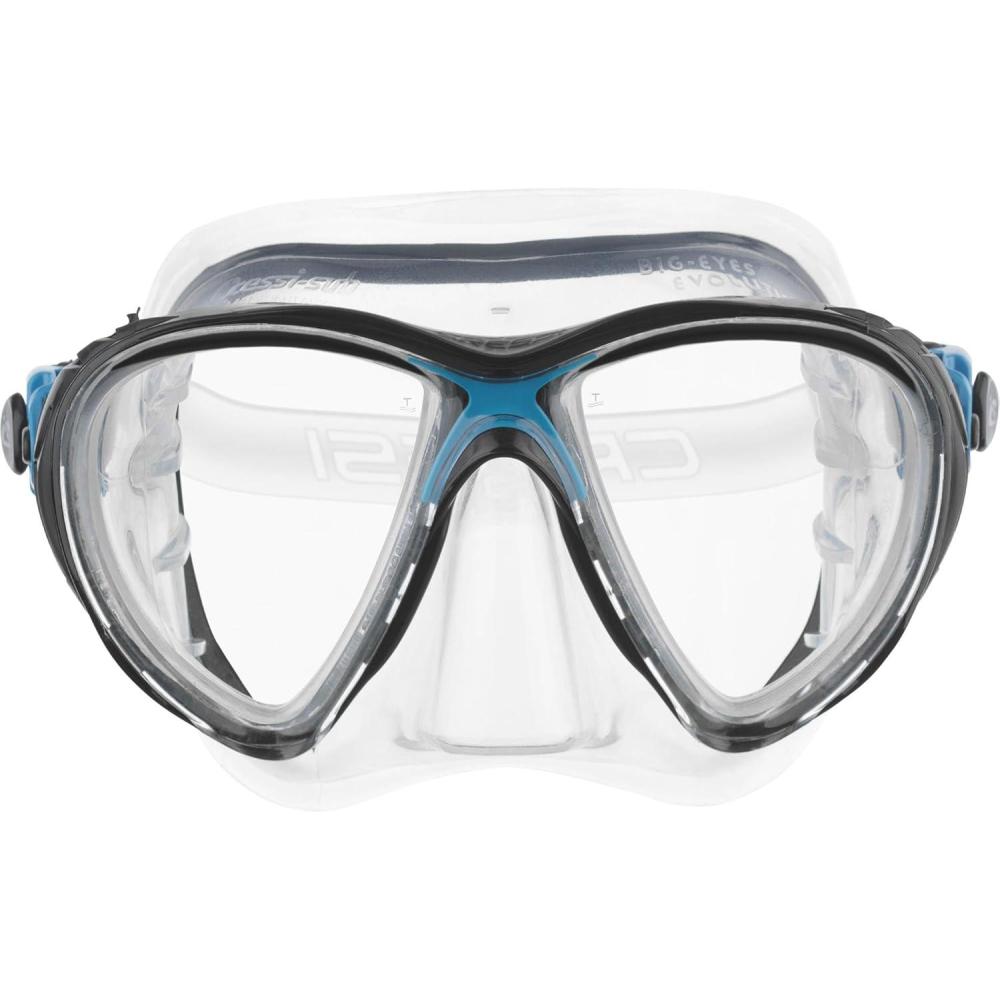 Cressi Scuba Diving Masks with Inclined Tear Drop Lenses for More Downward Visibility , Air and Eyes Evolution: Made in Italy(Clear/Black/Blue)