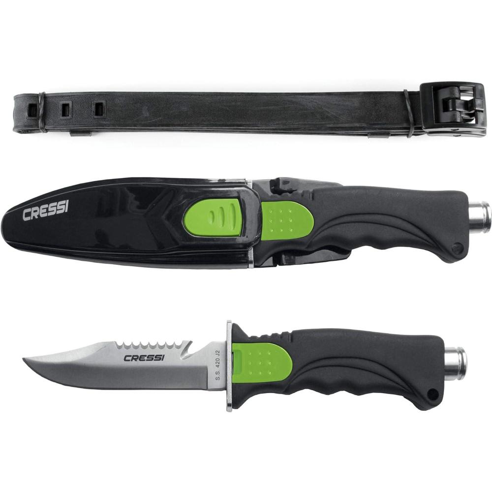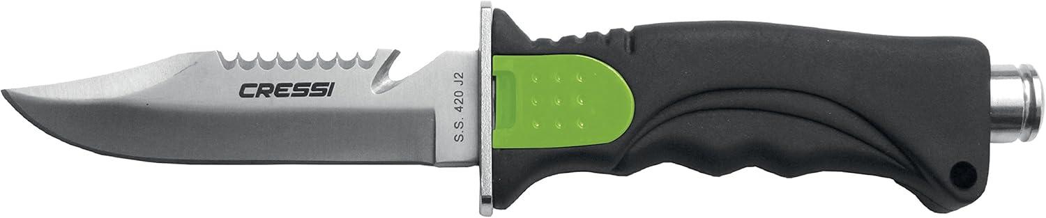 Cressi Skorpion, Tempered Stainless Steel Blade Knife ideal for Diving and Spearfishing – Pointed & Blunt Tip(Point Tip Lime)